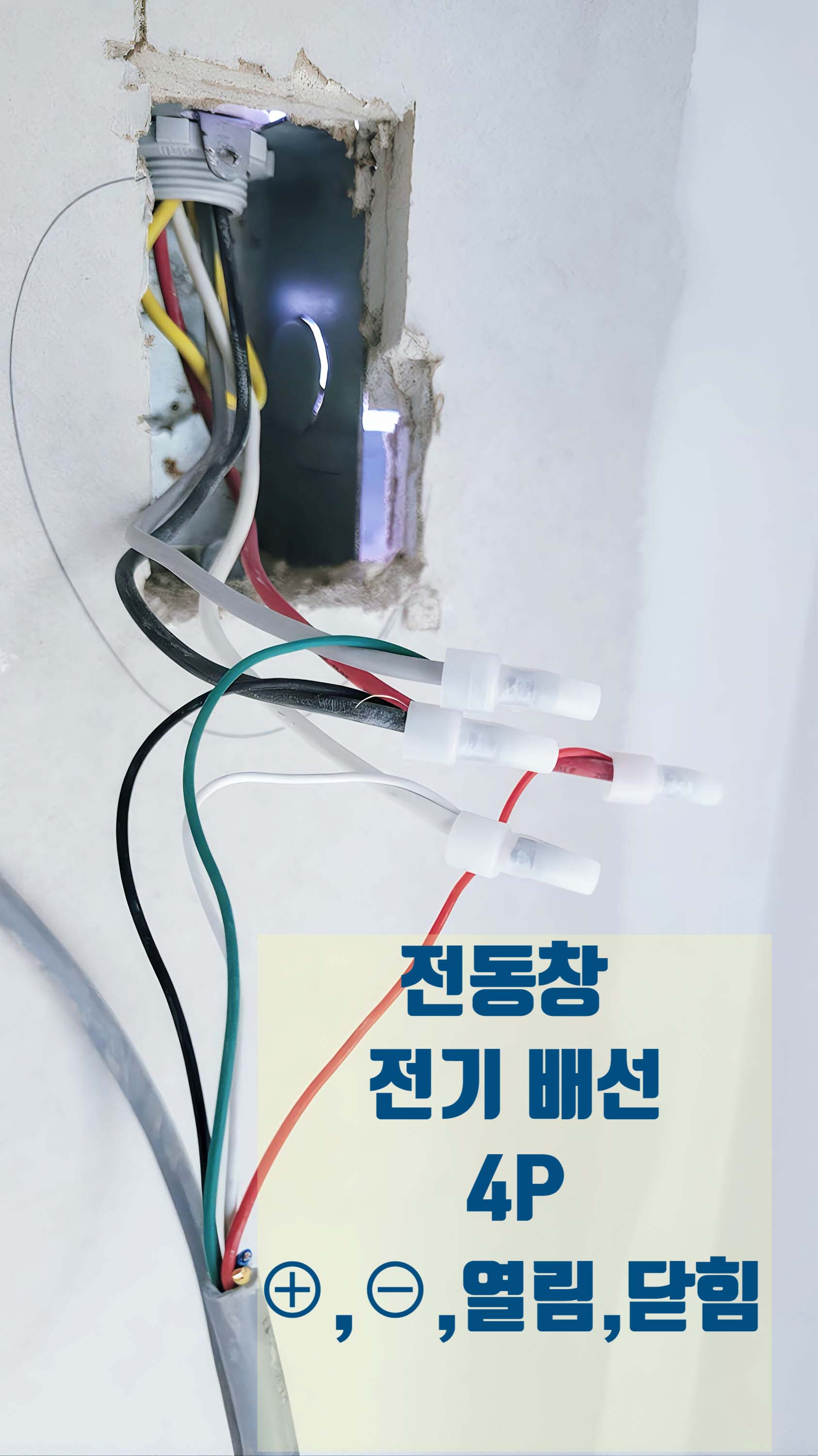 슬라이딩 전동창 개폐기 전기 배선 시공 과정입니다.