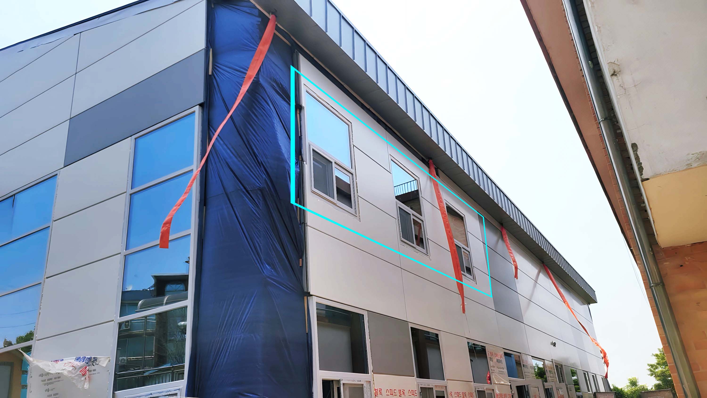 예천에 위치한 학교 체육관 슬라이딩(미서기창) 전동창 개폐기 시공 설치 과정입니다.▲슬라이딩 전동창 설치할 학교 신축 체육관 외부 전경입니다.▼신축 체육관 모습입니다. 좌, 우 상단 하단