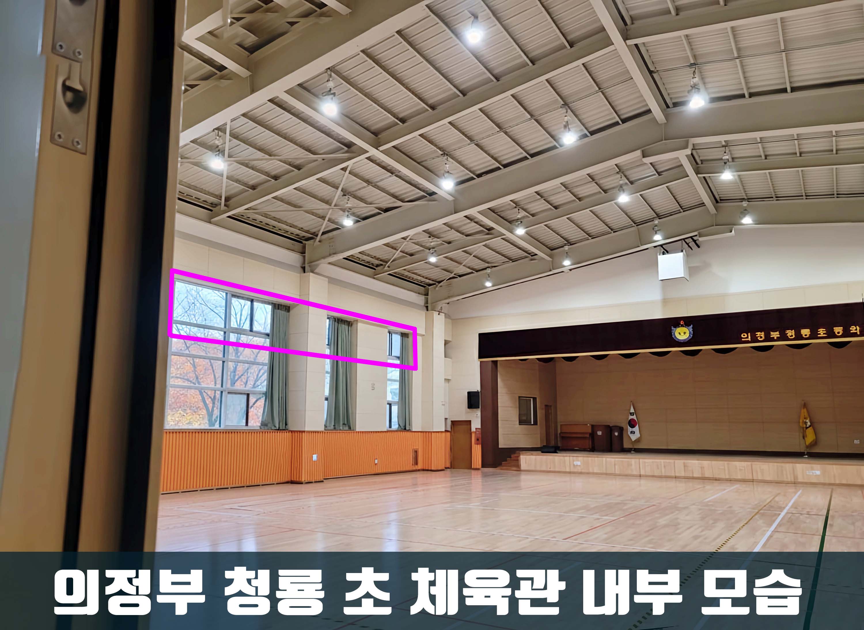 - 의정부 청룡 초등학교 체육관의 미서기 전동창 개폐기 교체 및 AS 시공.