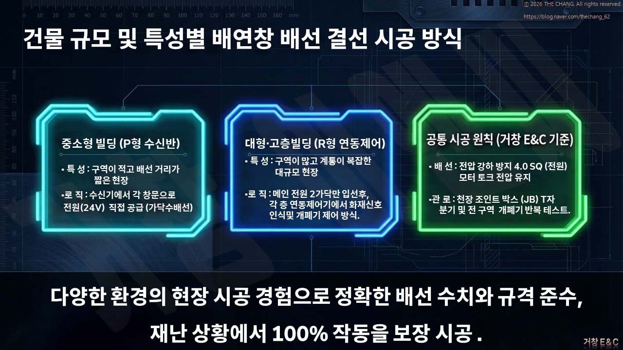 배연창 설비는 무조건 최신 방식을 따르기보다 현장의 거리, 관리 효율성, 그리고 예산을 고려한 최적의 시스템을 선택하는 것이 중요합니다. 오늘은 직관적인 P형 수신기 방식과 대규모 현장에 유리한 R형 전원반 방식의 실제 결선 데이터와 시공 팩트를 정리해 드립니다.